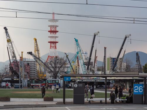 市電に乗って熊本の交通センター(バスターミナル)の脇を通ったところ、あたかも熱気に包まれたフェスが行われていると錯覚するほど、数多くのクレーンやパイルドライバがじゃんじゃん稼働していた。そりゃもう、かっこよさにしびれるよねえ。その時は別の…